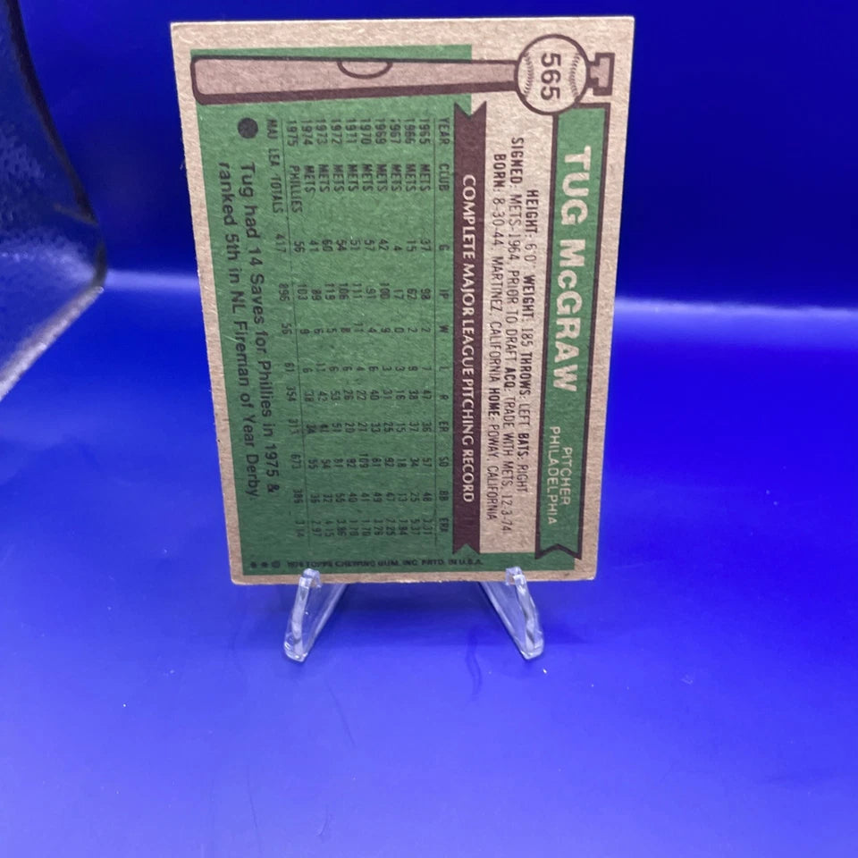 The product is a 1976 Topps baseball trading card featuring Tug McGraw, who played for the Philadelphia Phillies. As part of the base set for Major League Baseball, this card is a valuable collectible item for fans of the sport. With its classic design and iconic team colors, this card is a nostalgic piece of baseball history from the 1976 season.