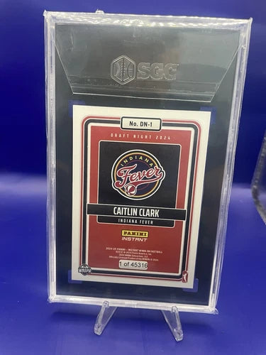 This is a rare and valuable Caitlin Clark Panini Instant 2024-2025 Draft Night DN-1 sports trading card. As a basketball fan, you understand the importance of owning a card like this. It features the Indiana Fever player in a stunning 9.5 grade, and is part of the 2024 Panini Origins WNBA set. The card has been professionally graded by Sportscard Guaranty Corporation (SGC), ensuring its authenticity and quality. It's a must-have for any collector, and a great addition to any sports trading card collection. Don't miss out on the chance to own this highly sought-after card.