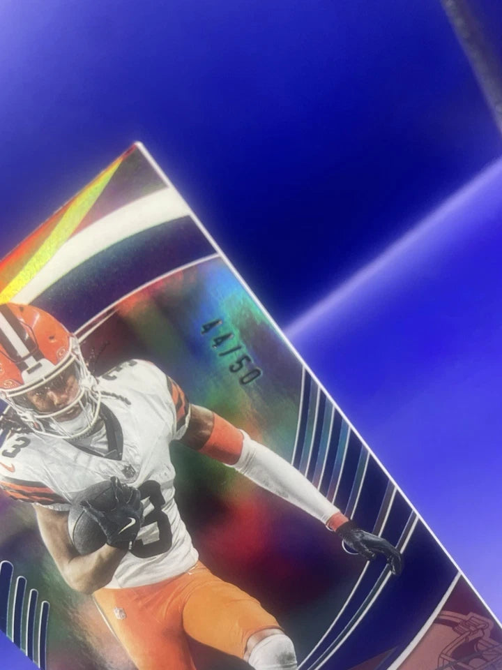 The Jerry Jeudy 2025 Panini Absolute trading card is a rare and collectible football memorabilia item featuring the standout wide receiver. Manufactured by Panini as part of the 2025 Absolute set, this limited edition card is numbered out of just 50 copies, making it highly sought after by collectors and fans alike. With its exclusive design and premium quality, this card showcases the skills and talent of Jerry Jeudy in the upcoming season, making it a valuable addition to any sports trading card collection.