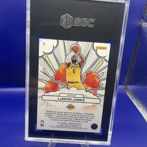 The product is a LeBron James sports trading card, specifically focused on basketball. These cards usually feature images and information about the athlete, making them popular among fans and collectors. LeBron James is a renowned basketball player who has had a significant impact on the sport, making his trading cards highly sought after by enthusiasts and investors alike. These cards serve as a unique way to own a piece of basketball history and connect with the legendary athlete.