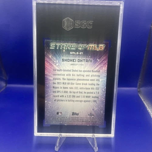 The product is a sports trading card featuring Japanese professional baseball player Shohei Ohtani. As a highly collectible item, this card is sought after by fans and collectors alike for its rarity and association with a talented athlete. Fans of Ohtani and collectors of sports memorabilia would be interested in adding this card to their collection to celebrate the player's achievements in the sport.