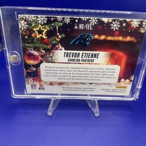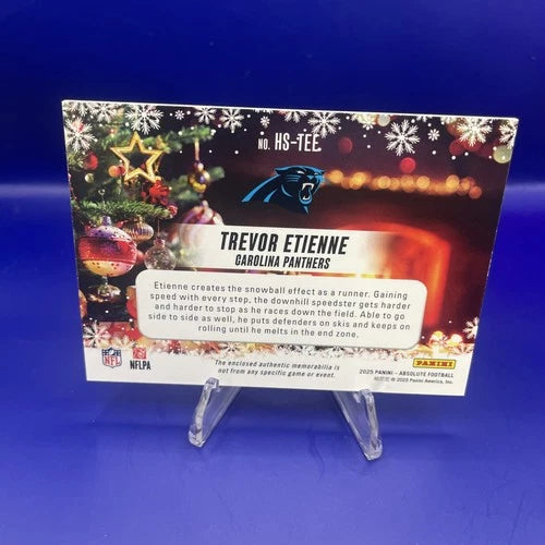 The Trevor Etienne Rookie Patch is a sports trading card featuring the football player Trevor Etienne. This card is a special edition with a patch design, making it a unique and collectible item for fans and collectors of football memorabilia. As a rookie card, it holds value for those looking to acquire cards of up-and-coming players in the sport.